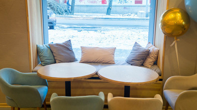 Занимайте кофейные столики и уютные места на мягких подоконниках. Пока официант готовит быстрые завтрак, ланч или бранч, вы сможете уделить мгновение себе и спокойно построить планы на день.